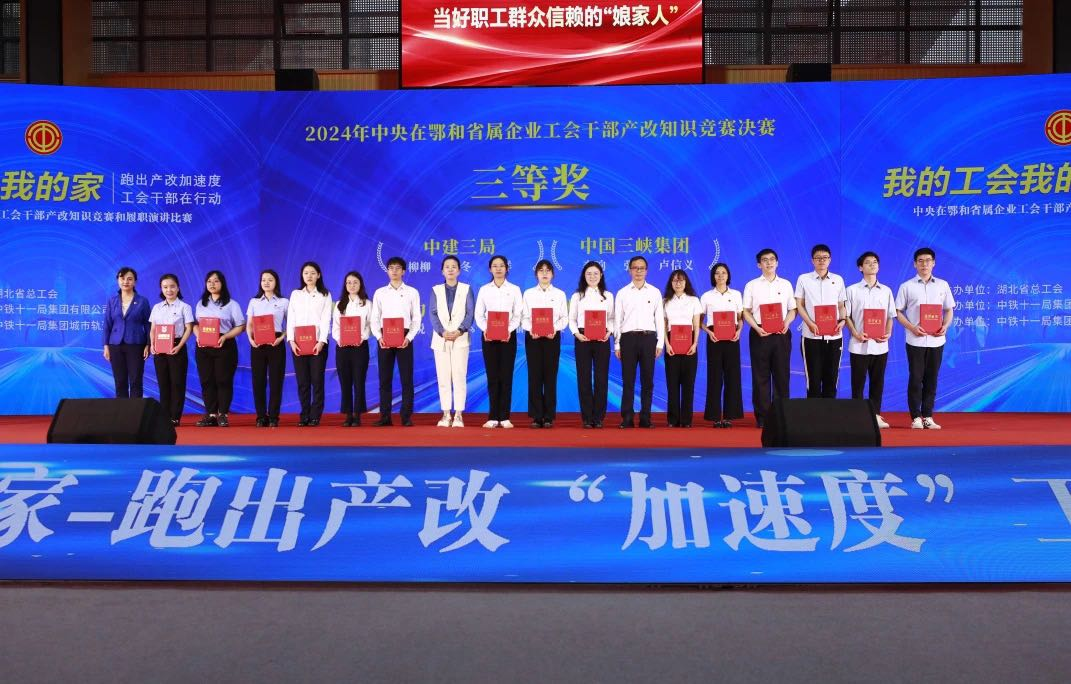 本網(wǎng)訊(李響)近日,由湖北省總工會主辦的2024年中央在鄂和省屬企業(yè)工會干部產(chǎn)改知識競賽和履職演講比賽決賽在漢圓滿落幕,湖北能源工會主席李春華出席決賽閉幕式。由湖北能源李響、盧信義、張宇3名職工組成的三峽集團代表隊榮獲“產(chǎn)改知識競賽我知道”知識競賽三等獎。
