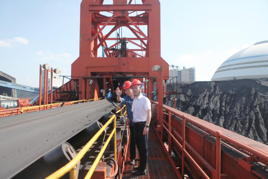 察看鄂州電廠輸煤系統(tǒng)運(yùn)行情況(攝影:王鑫)